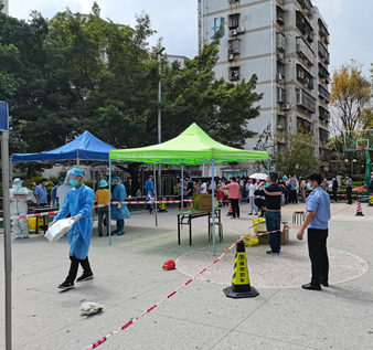 新冠肺炎確診病例近日在深圳增多,各小區(qū)的喇叭不知疲倦地呼喊“請(qǐng)到指定地點(diǎn)核酸檢測(cè)”,門崗都站立著戴口罩、穿防護(hù)服的物業(yè)人,提示“請(qǐng)出示健康碼”,這是深圳物業(yè)人的抗“疫”景象。