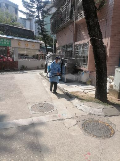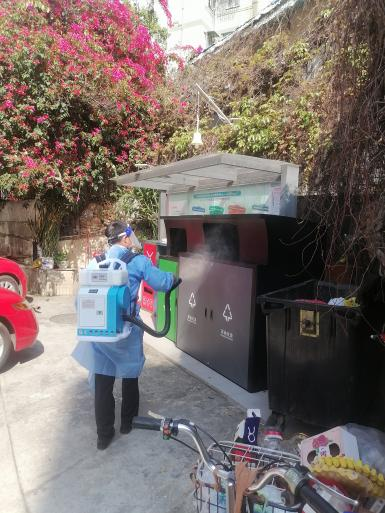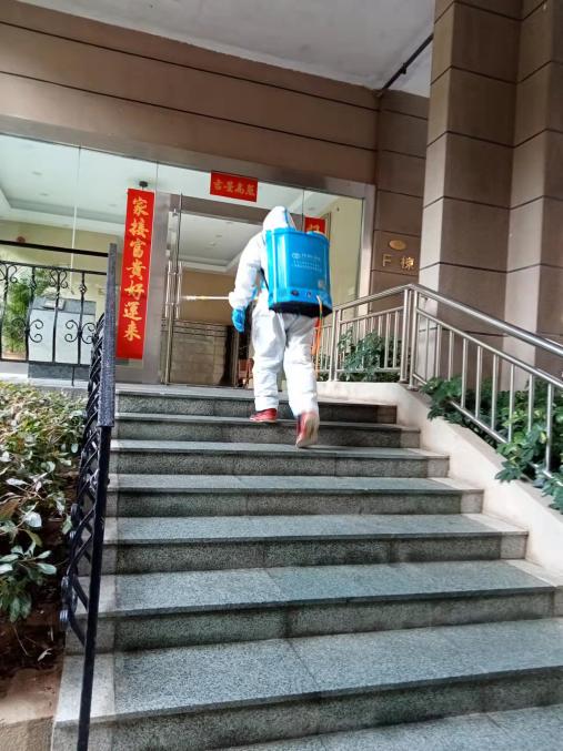 天剛放亮,泰源物業(yè)環(huán)境消殺的工作人員便開始消毒、消殺工作。居家隔離戶門前、樓道、垃圾站點(diǎn)、核酸采樣點(diǎn)等公共區(qū)域不遺漏。