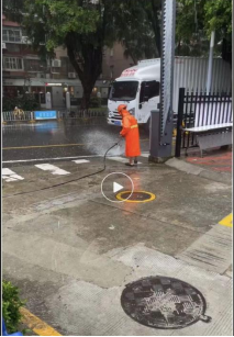 天亮早起的業(yè)戶,看到保安仍在清理樹枝,沖洗地面,豎起拇指對他們說:“你們辛苦了,好樣的!”
